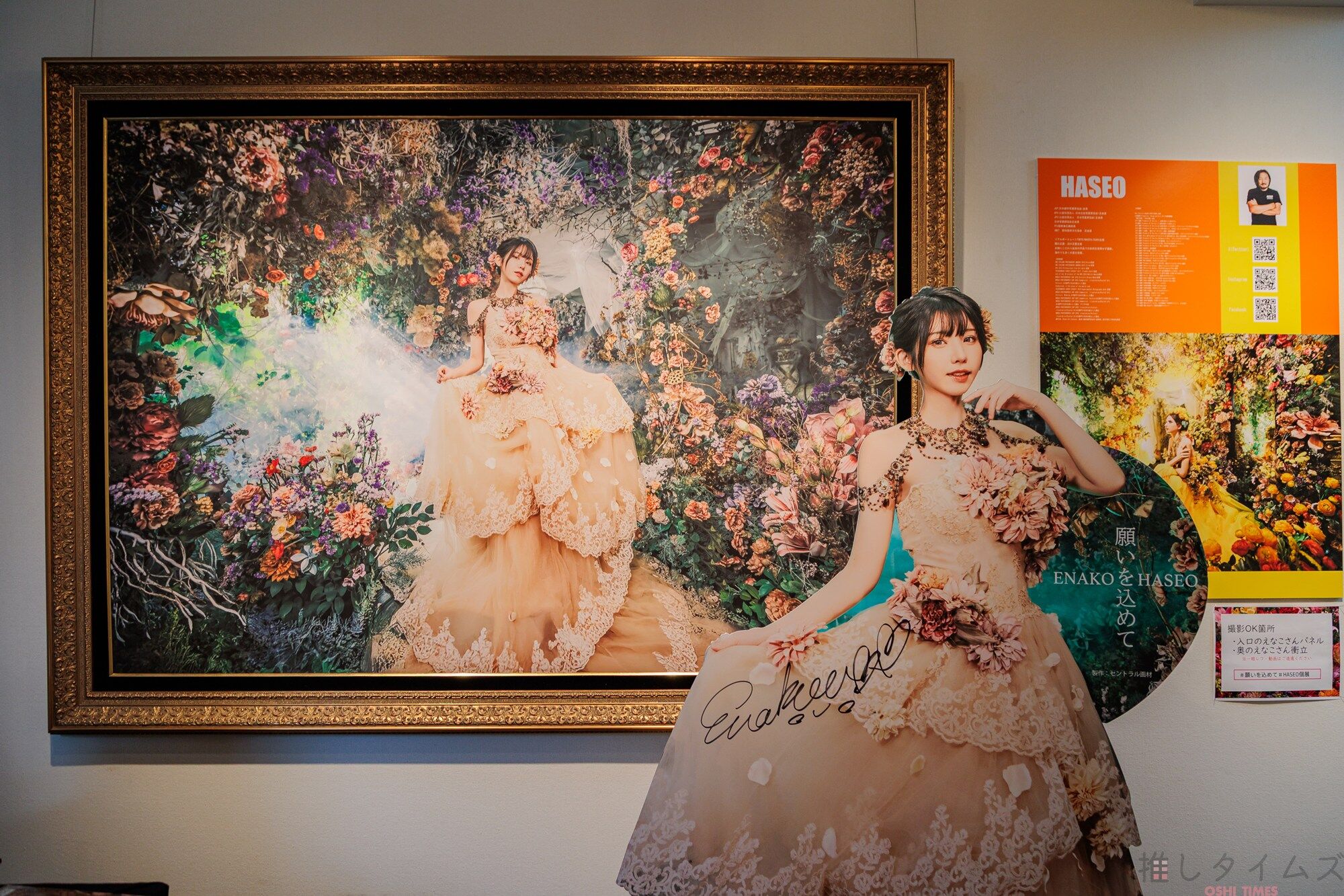 同個展で特に注目されているのが、SNS総フォロワー数は500万人を超える日本のトップコスプレイヤー・えなことのコラボレーション。マンガ誌のグラビアを始め様々なメディアで活躍している、えなこに対して多くの人が「“コスプレ”“セクシー”などのイメージを持っているのではないか」と語るHASEO氏。露出を排し、衣装のラインや表情、空気感だけで勝負したいという思いから、えなこを1人のモデルとして迎え入れた。