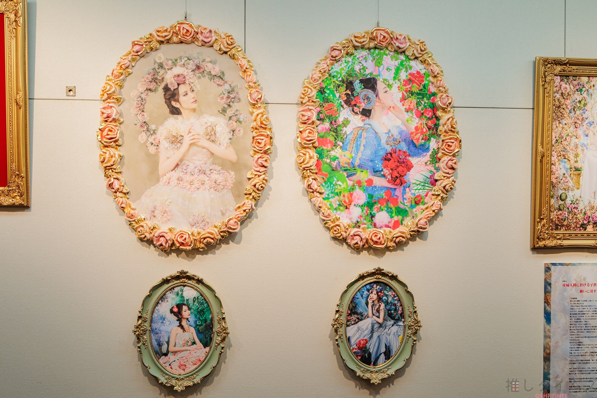 会場には、えなこ以外の被写体を含め、約60点の作品が展示。すべての作品が「願いを込めて」というテーマに沿い、細部まで緻密に構成されているという。例えば「最期の晩餐〜神を裏切ったのは全人類〜」や「七つの大罪」といった作品は、制作期間2年を費やして完成したもの。一方で、「白雪姫」をモチーフにした作品は、企画から撮影までをわずか1日で撮りきったという。それらの構図やライティング、被写体の表情、配置されたモチーフそのすべてに意味があり、見る角度や心境によって解釈が変わる。静かにたたずむ作品の前で、思わず言葉を失う来場者も多かった。