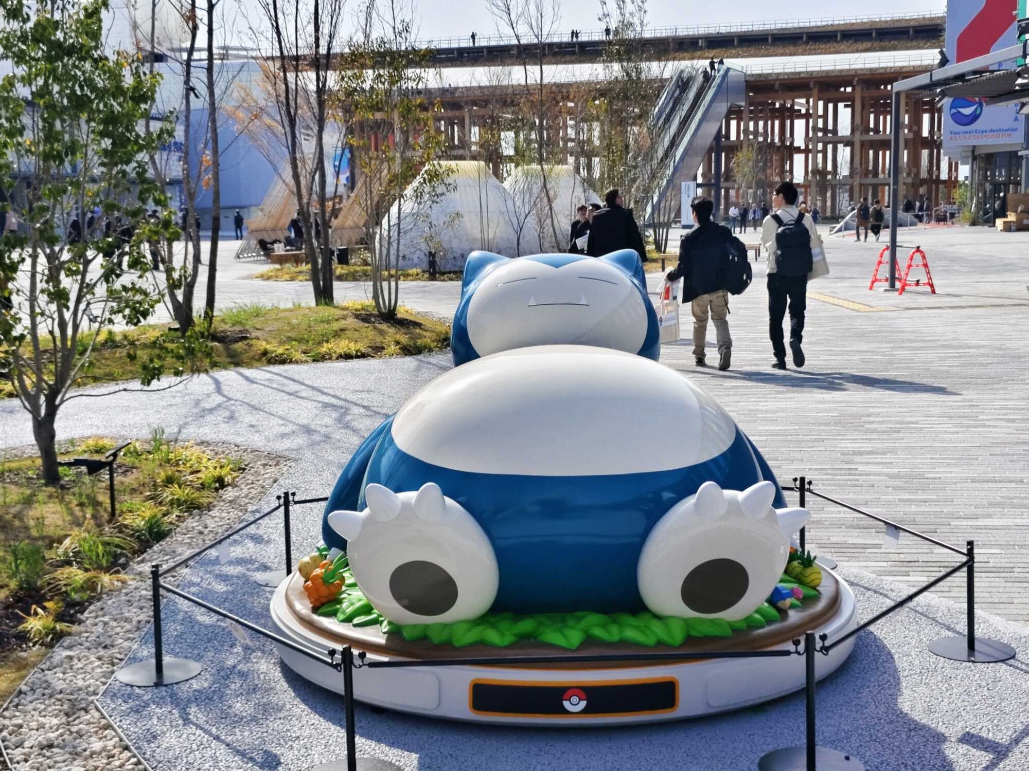 また、会場内を歩きながら楽しめる企画として、「Pokémon GO(ポケモンGO)」のスタンプラリーが登場♪特定のポケストップでフォトディスクを回すとスタンプが集まる仕組みで、ピカチュウやカビゴンなど人気ポケモンのオブジェもあちこちに出現中!
