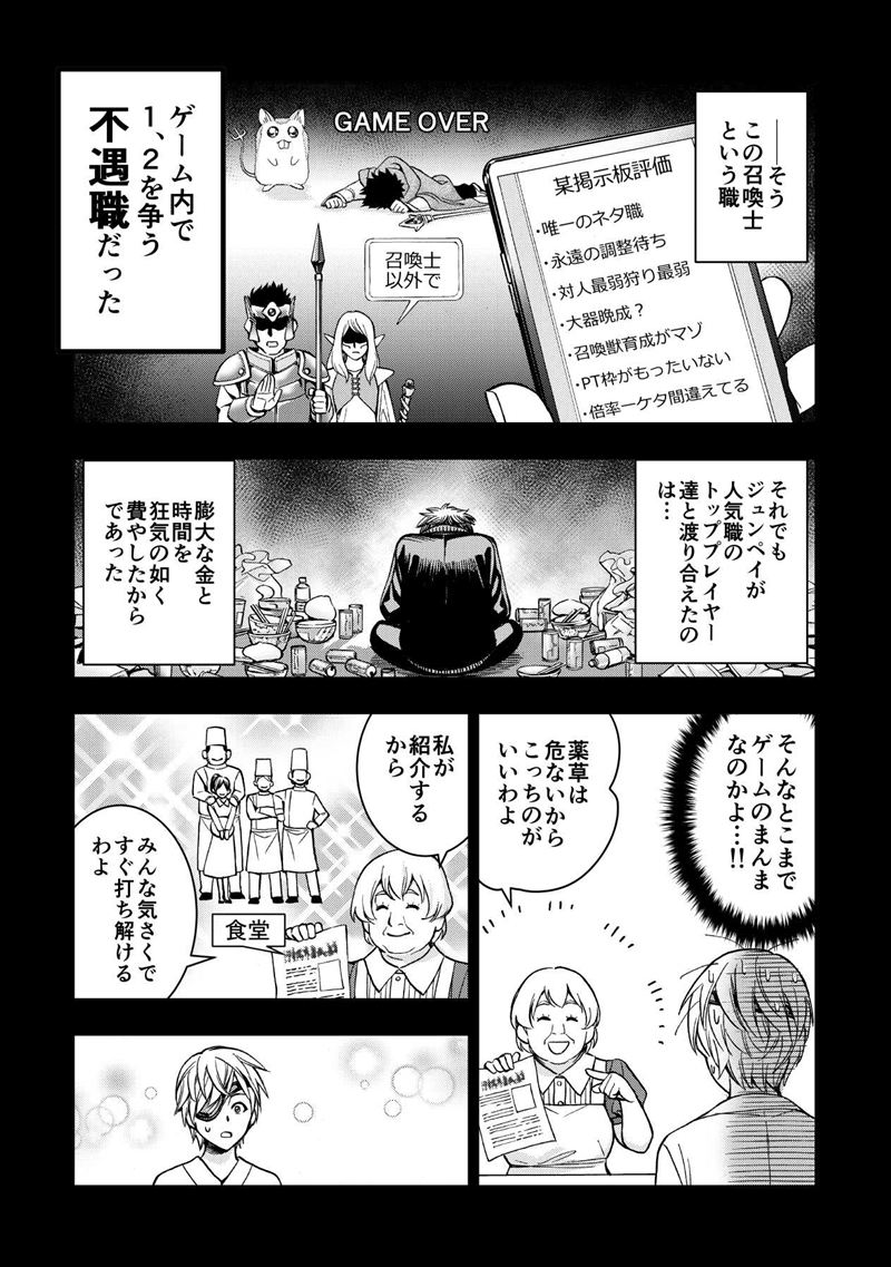 召喚士として生計を立てようとするも、現実の異世界はゲームとは異なり、命を賭した過酷な戦いが待ち受ける…。ゲームで得た知識を武器に、ジュンペイが少しずつ成長し、召喚士としての実力を発揮していく姿が描かれています。