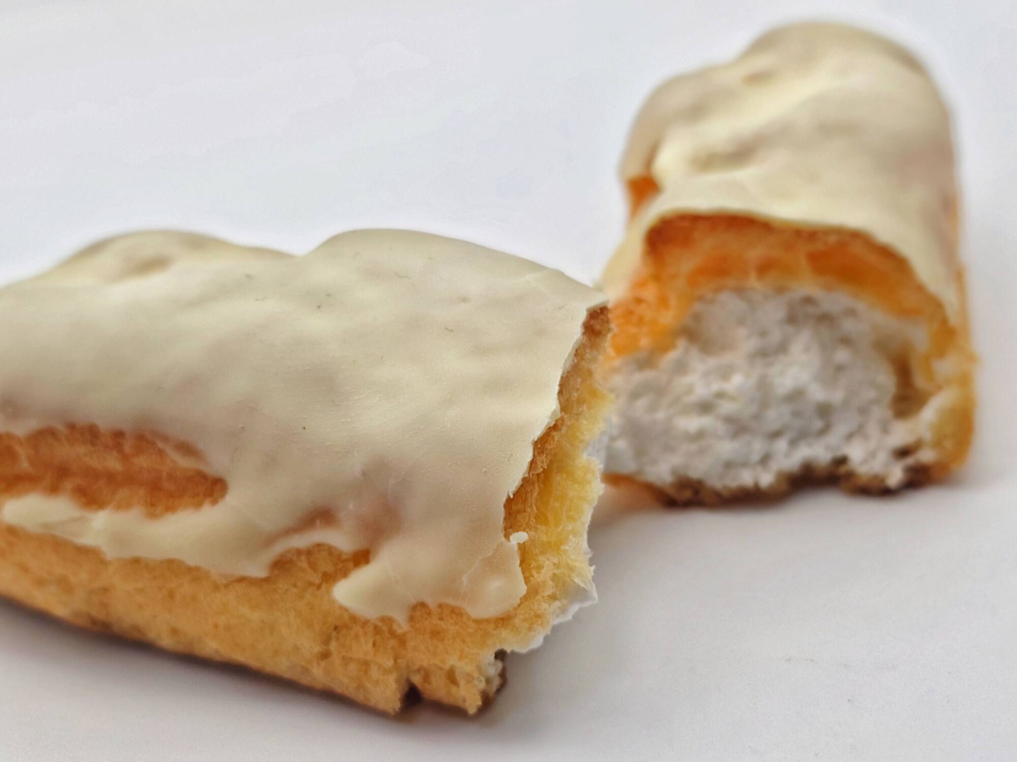 一方の「むちゃうまヨーグルトエクレア」は、同じく甘酸っぱいムース状のヨーグルトクリームをエクレア生地に詰め、上からミルクチョコをトッピング。感覚としては上記のシュークリームよりも酸味が強いものの、ミルクチョコのまろやかな甘さと香ばしい生地がマッチするような絶妙な味わいに仕上げられています。