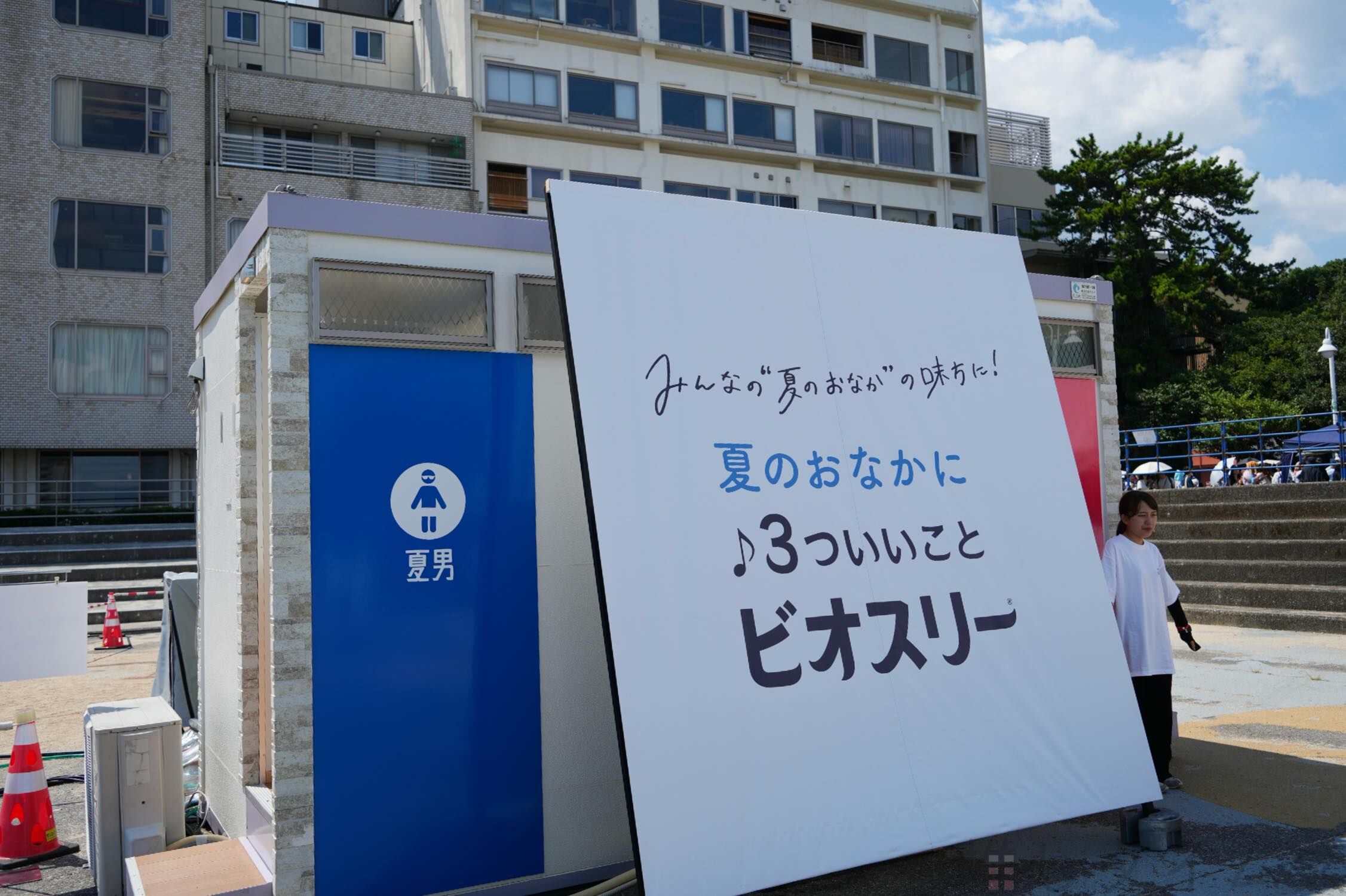 アリナミン製薬の整腸薬ブランド「ビオスリー」は8月23日、大分県別府市で開催された「BOB2025(別府温泉ぶっかけフェス2025)」において、エアコン完備の特設トイレを設置。製薬メーカーが手掛ける取り組みについて、現地担当者に話を聞きました。