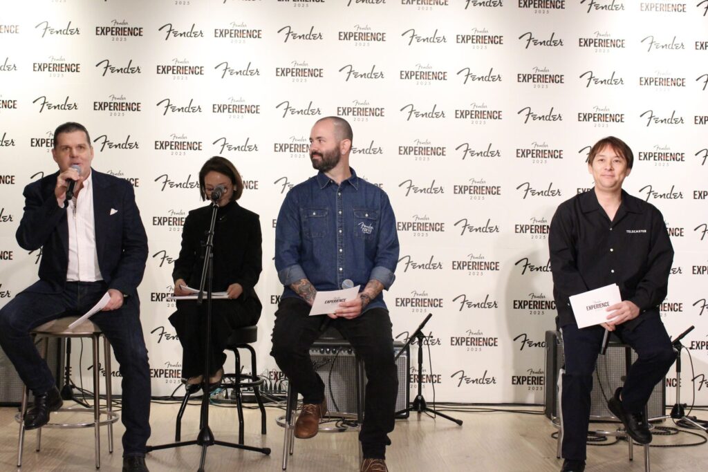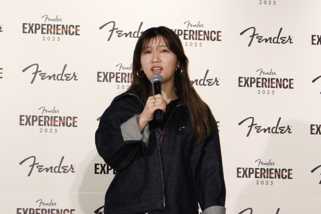 Fender Experience 2025では、200台のギターが展示される予定で、それにちなんで「ついつい集めちゃうものは」と聞かれると、ヒコロヒーは「ウィスキーにハマっていて、タリスカーが好きです。スモーキーで少し臭みがあります」と回答。マーティは、かっこいいギターの弾き方のコツを、「弾いている曲が好きならば好きなほどかっこよく見えると思います」と説明した。