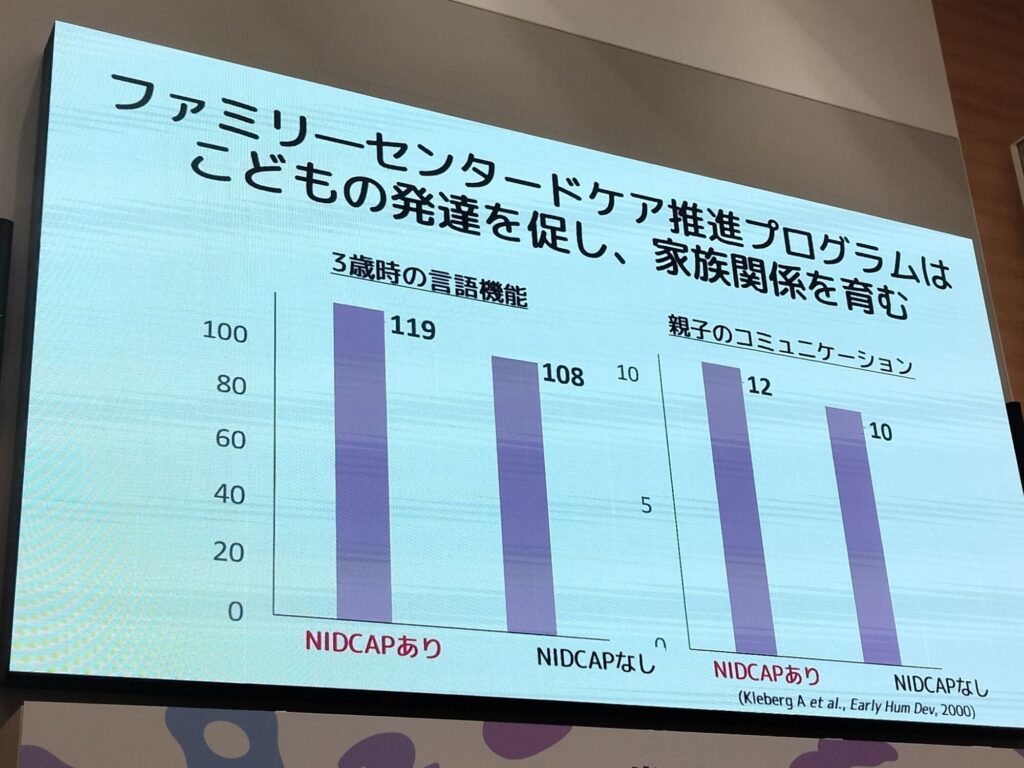 有光氏は「赤ちゃんはお腹の中にいて、お母さんの声を聞きながら愛着や発達を育みます。しかし早産で新生児病棟に移動すると、家族から離れ離れになり、治療の痛みもあって愛着形成や発達も促されにくいんです」と説明した。