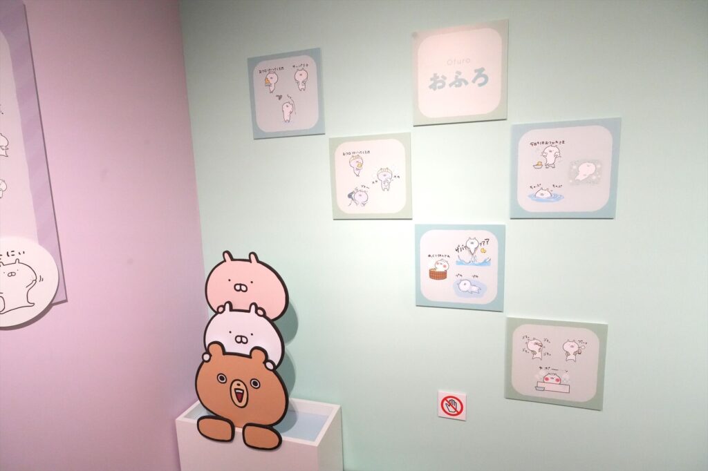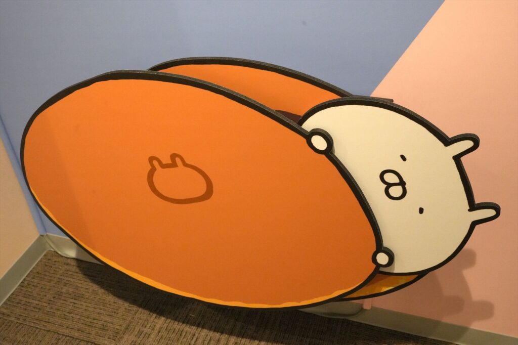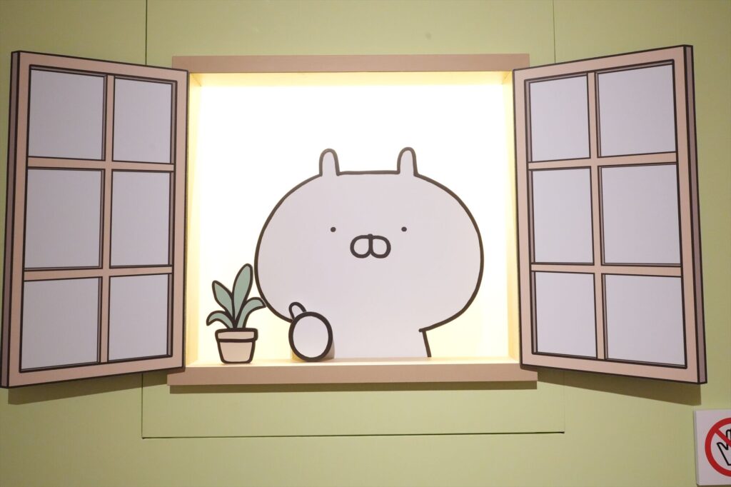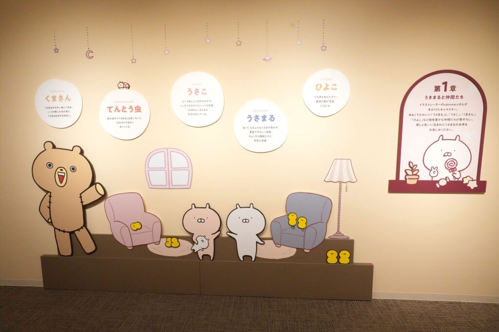 まず入口では、うさまるがお出迎え。扉から中に入ると、「うさまると仲間たち」コーナーへ。うさまるやうさこ、くまさんやひよこ、てんとう虫などおなじみのキャラクターが登場します。