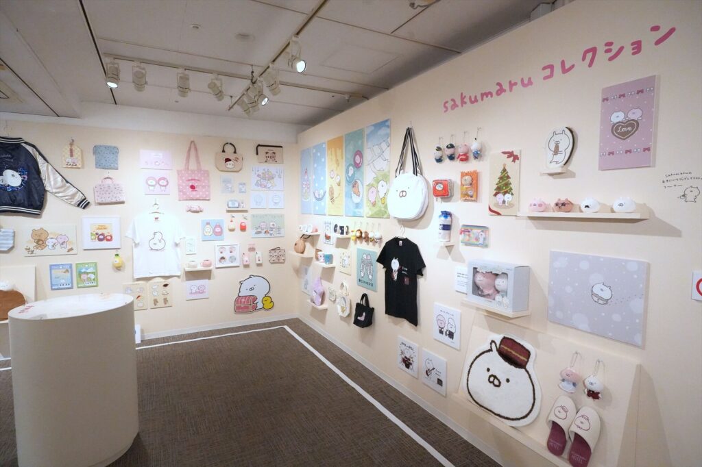 続けて「sakumaruさんのお部屋」と作業風景やラフカットなどここでしか見られない貴重な展示も多数。「うさまるのたからばこ」では、厳選された各グッズが登場します。最後には、うさまるたちと写真が撮れるフォトスポットコーナーやお土産コーナー、物販もあり、最後までうさまるの世界観に浸れる素敵な展示会となっていました。