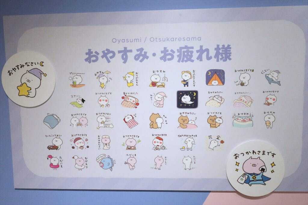 そこから進むと「うさまるーむ ~LINEスタンプ~」とこれまでのうさまるスタンプを大特集。おはようからおやすみまで、いろいろなジャンル分けされたスタンプが紹介され、数多くのスタンプが生み出されてきたことが実感できます。