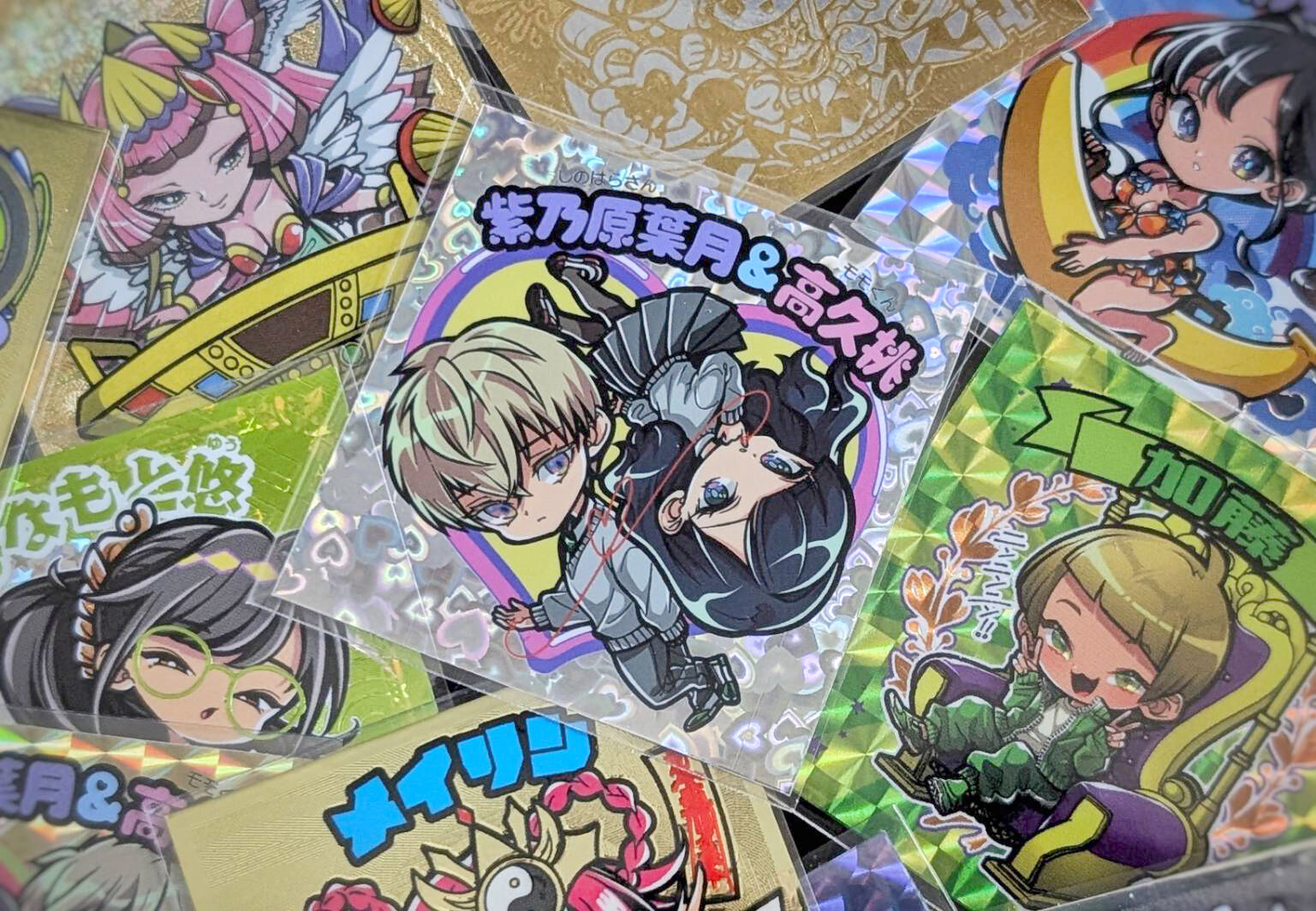 2020年か2021年ですね。当時連載していた『ハケンの忍者アカバネ』が最初のシールです。その後「おひとりさま女子ちゃん」をビックリマン風に描いたら「商品化してください」と声が上がって、印刷会社さんに頼んで作りました。自分の絵がキラキラのシールになって、みんなも喜んでくれて、本当に感動しました。今はYY-FACTORYさんと一緒にシールを作っています。