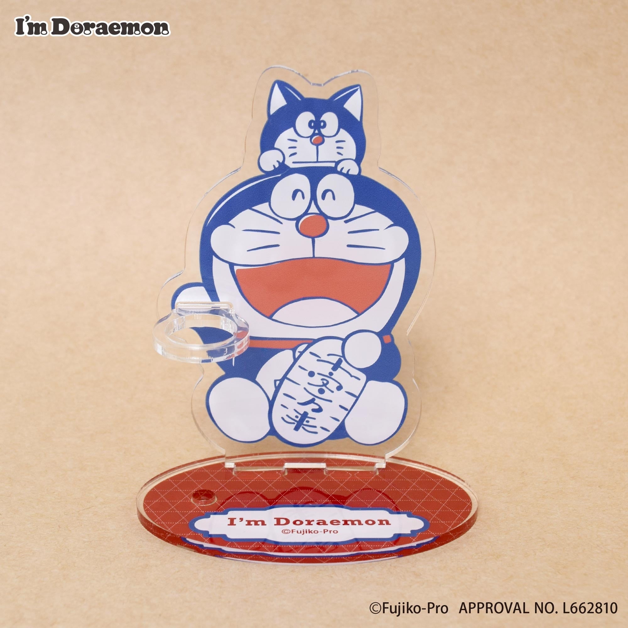 ドラえもんと、カムカムキャットフードを食べた猫のほっこりとした表情に癒されるアイテム。