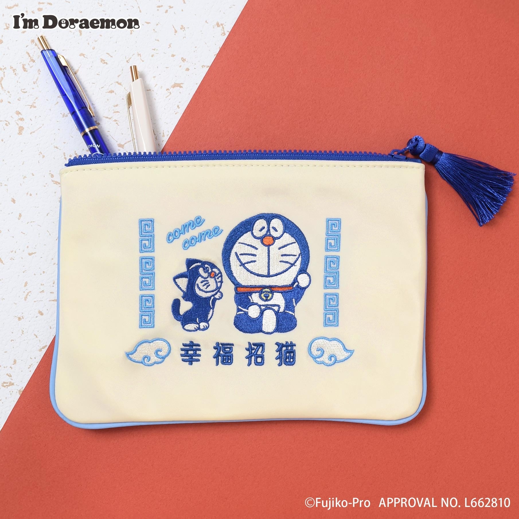 フラワーリングから、お正月にぴったりの華やかな新作コレクションが登場。「カムカムシリーズ」から、新年を彩る華やかな新作が登場します。ひみつ道具「カムカムキャットフード」を食べた猫をモチーフにしたアートを使用し、お正月を感じさせるカラーリングがポイントです。