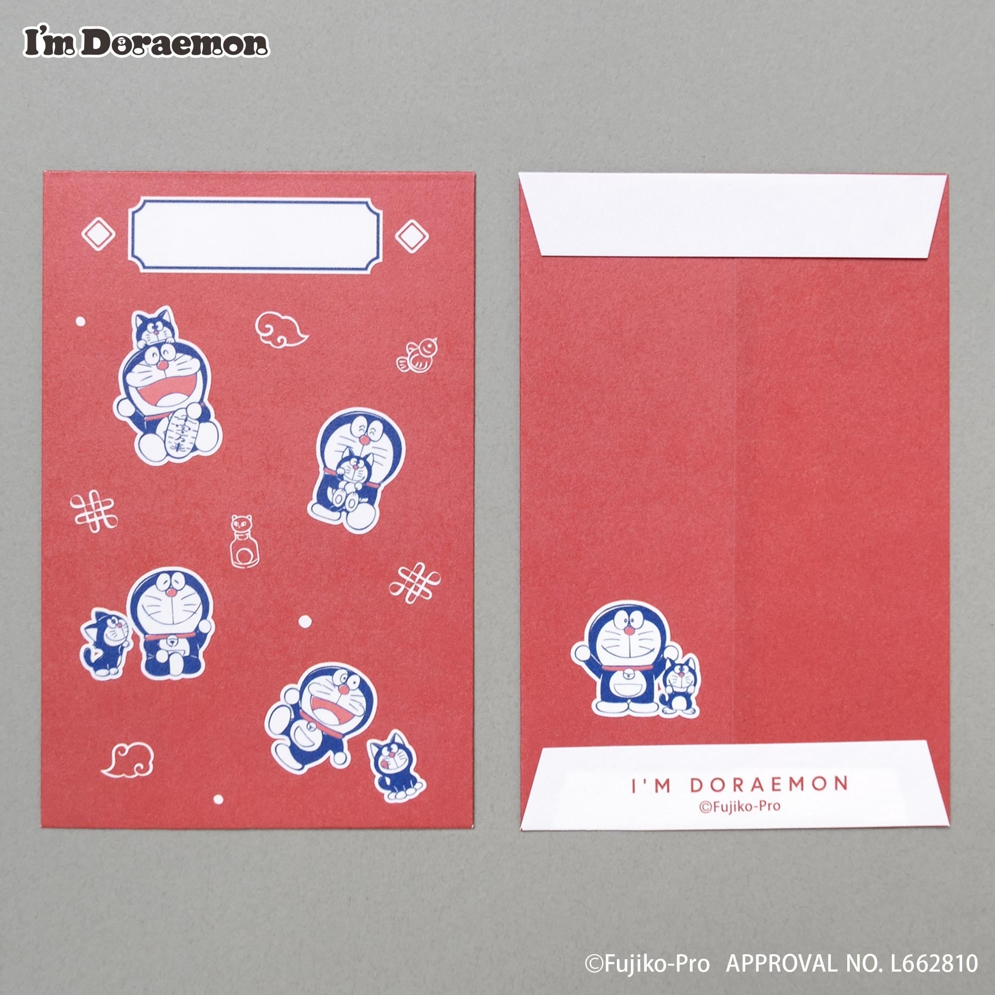 【ドラえもんとカムカムキャットフードを食べた猫がプリントされたもなか】