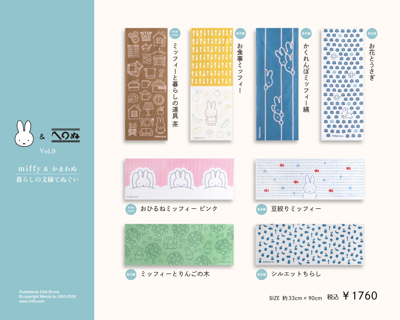 キャラクター「ミッフィー」より、「miffy & かまわぬ 暮らしの文様 vol.9」が2025年12月18日より、かまわぬ直営各店、かまわぬ公式オンラインストア、かまわぬ楽天市場店、全国一部取扱店で販売がスタートします。