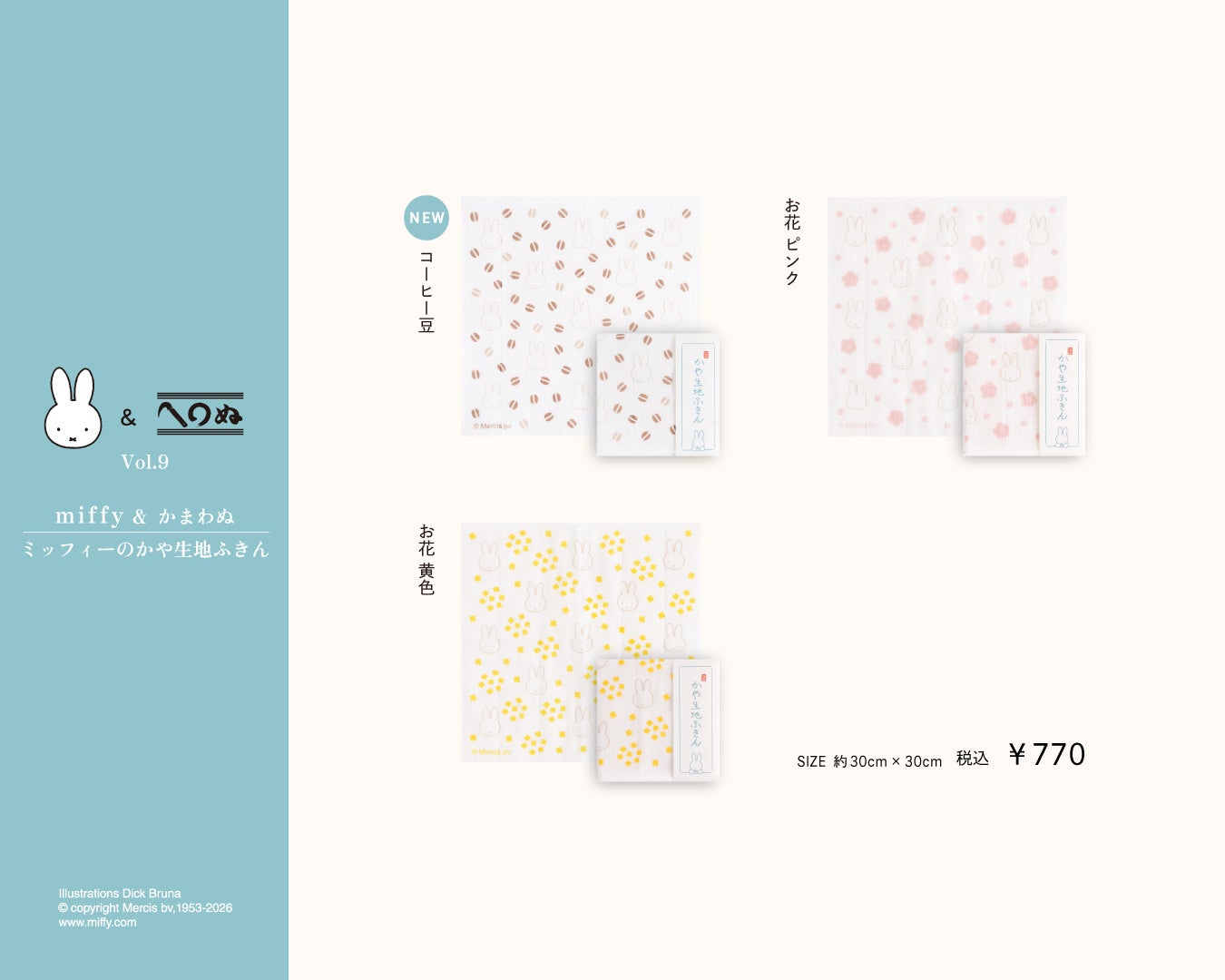 ミッフィーのかや生地ふきん 全3種類 各種 770円(税込)