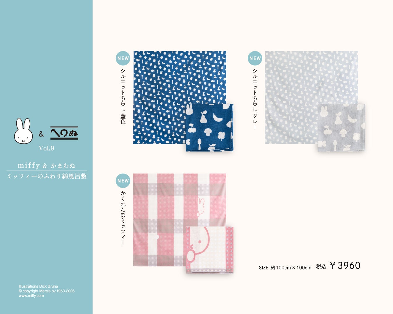 ミッフィーのふわり綿風呂敷 全3種類 各種 3,960円(税込)