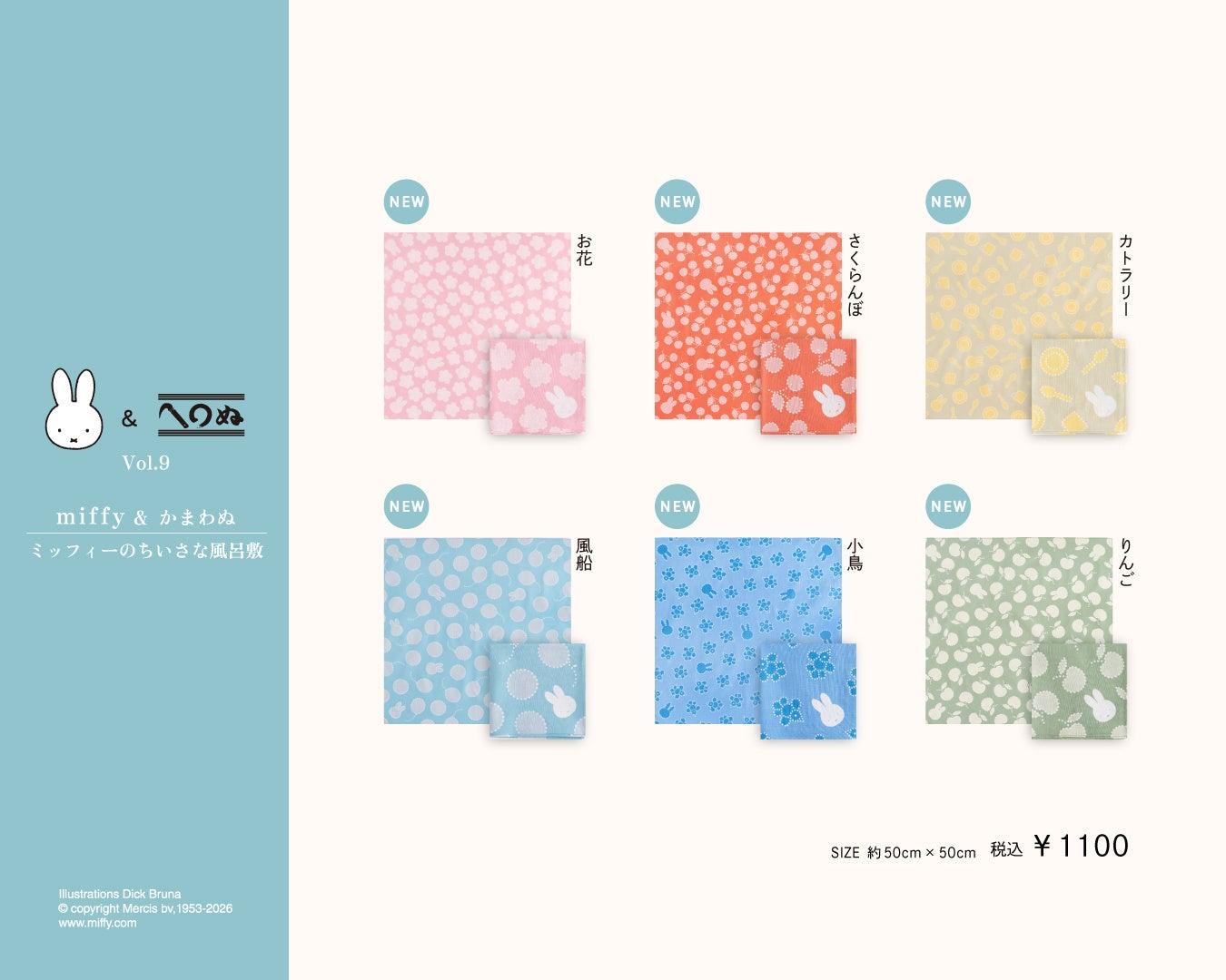 ミッフィーのちいさな風呂敷 全6種類 各種 1,100円(税込)