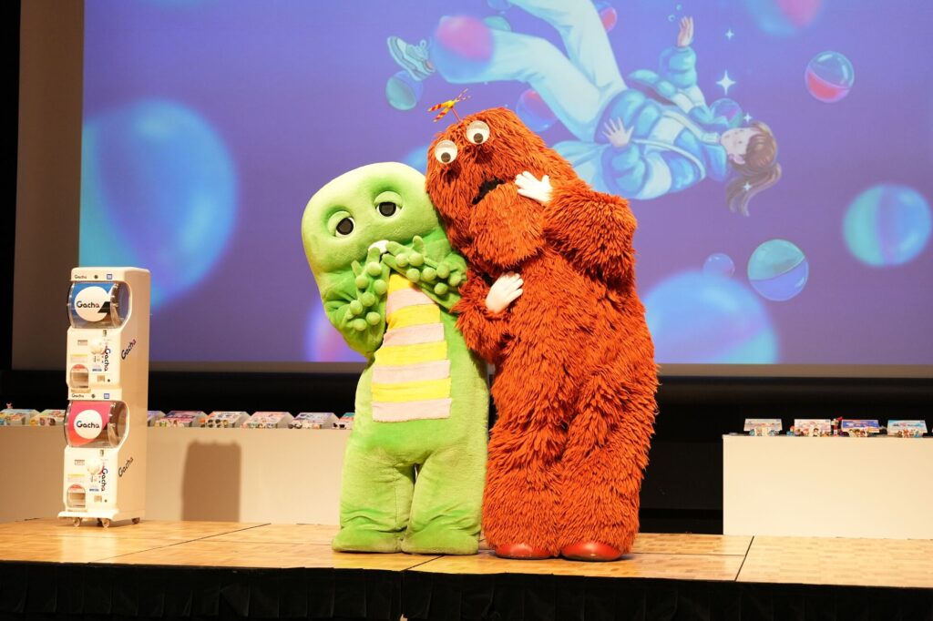 その後のステージイベントでは、ガチャマシンを用いたトークセッションを行った。ガチャピンとムックが引いたガチャの中身には、「ふたりの本名は?」、「ふたりの特異なウインタースポーツは?」、「自分たちをガチャの商品にするなら?」という質問が。