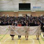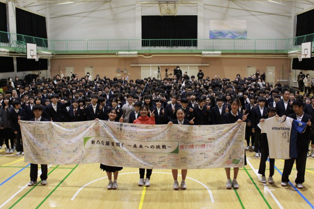 会の後半には、代表生徒による挨拶、目標を記した横断幕の披露が行われた。生徒は、「今回教えていただいた多くのことを心の中に入れて、目標を達成していきたいです。目標や自分へのエールを全生徒が横断幕に書いてきました。ぜひご覧ください」と挨拶。横断幕を見て谷氏は、「前向きで力強い言葉がたくさんありますね」と感想を述べた。栗山氏は、「みなさん素晴らしいです。頑張ってください」と称賛し、「自分が書いたことに対して、本気で意識し続けてほしいと思います」と締めくくった。