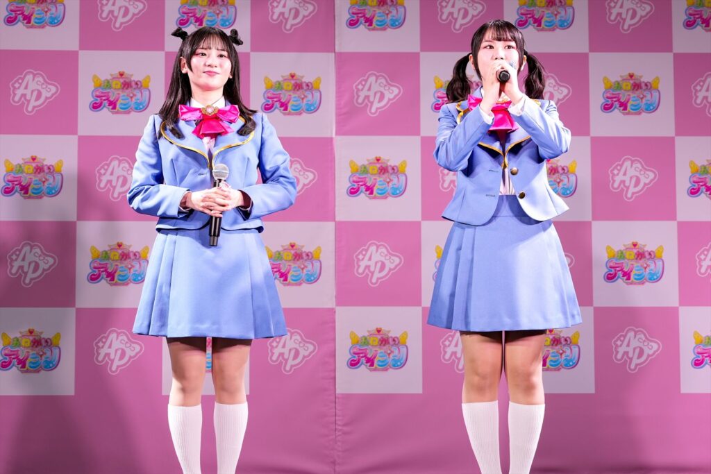 そして、本作の主人公・好実いのり役は小川華果、夢宮あおい役は叶矢りかが担当することを発表。小川は「叶矢ちゃんとは同じ事務所なので、発表を聞いたときも一緒のタイミングでした。なので、ふたりで抱き合って泣くくらい嬉しい気持ちでいっぱいでした。アフレコが近づくに連れ、プレッシャーが増えてきて、でも叶矢ちゃんと切磋琢磨して、いまは楽しくアフレコをしています」と語った。