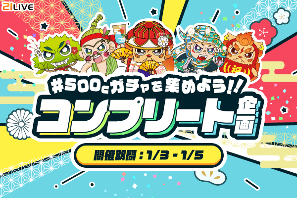 【21LIVE】1月3日(土)より『500Cガチャを集めよう!!コンプリート企画』スタート!お正月限定キャラをコンプリートして豪華プライズをゲットしよう