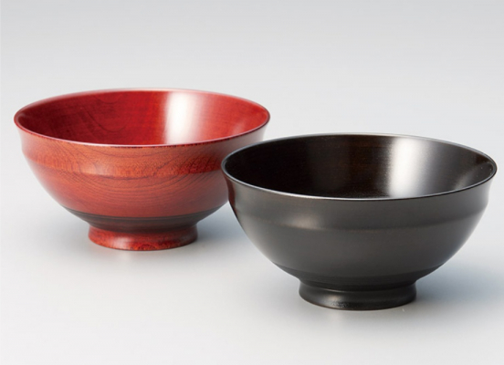京都漆器の伝統技法を用いて丁寧に仕上げた「夫婦椀 Sakura」は、黒と赤の対比が美しいペアの飯椀セットです。