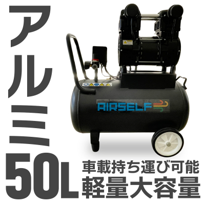 2.エアセルフ静音オイルレスコンプレッサー 軽量 アルミ製 50L 100V ブラック