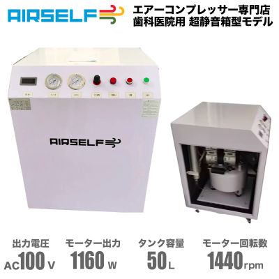 3.エアーコンプレッサー専門店エアセルフ 歯科用パッケージコンプレッサー 50L 100V ドライヤー付き