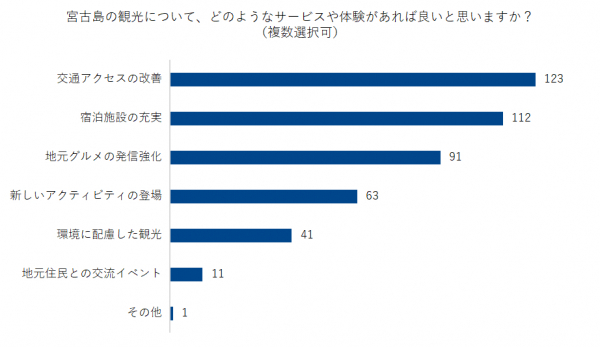 【質問】宮古島の観光について、どのようなサービスや体験があれば良いと思いますか?(複数選択可)