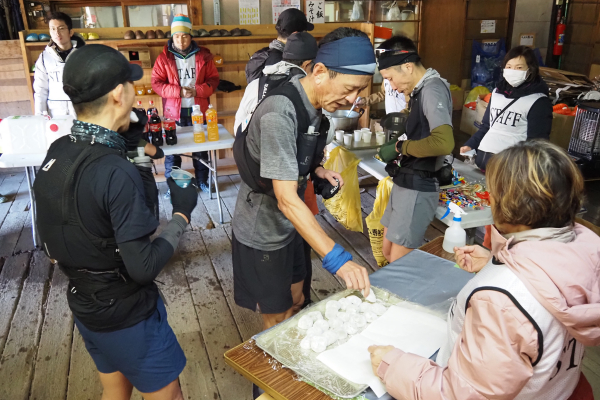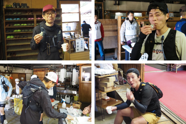 明日香野は、1,200mを登った地点にある七面山エイドで「増量よもぎあんこ餅」をお渡し。給水より先にあんこ餅を頬張る選手の姿も見られました。大会当日は何かと忙しいスタッフの皆様にも「芋きぶん」をちょっとつまんでいただき、喜んでいただけました。