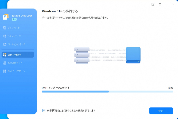 ステップ5:再起動後、新しいディスクへのWindows 11のインストールが自動的に実行される以外に、データの移行も行われます。