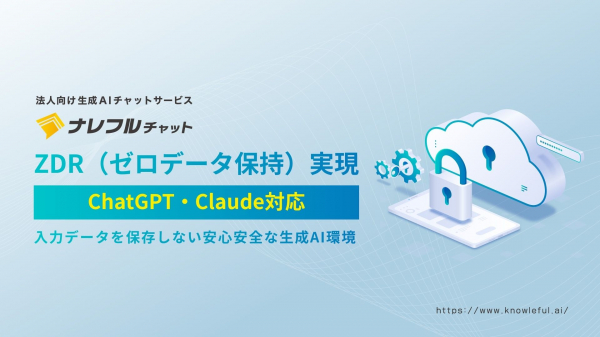 AIサービスやシステム開発を手掛けるCLINKS株式会社(本社:東京都中央区、代表取締役:河原浩介)は、2025年12月4日(木)、提供する法人向け生成AIチャットサービス「ナレフルチャット」において、ChatGPT・Claudeにおいて、ZDR(Zero Data Retention/ゼロデータ保持)に対応したことをお知らせいたします。これにより、企業が入力した機密情報がAIプロバイダー側に保存されない環境が整い、より安全な生成AI活用が可能となります。