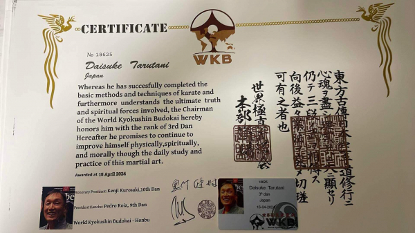 樽谷大助はWKB世界極真武道会日本支部名誉顧問の他、世界武道連盟常務理事、IKF 国際連盟極真会名誉顧問も務めている