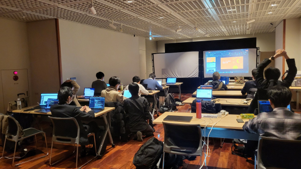 写真2: 『自前チップ設計試作ハンズオン口座』参加者。 『自分のチップ』を設計しマスク生成試作する様子