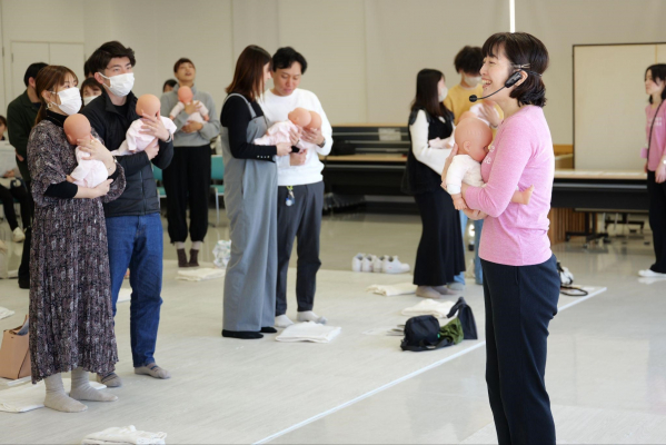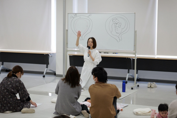 さらに、産後の方から産前の方へ「産後ケアは心身ともに救われるので、ぜひ利用すると良い」といったアドバイスもあり、産前・産後の参加者が一緒に学べる両親学級ならではの温かい交流時間となりました。