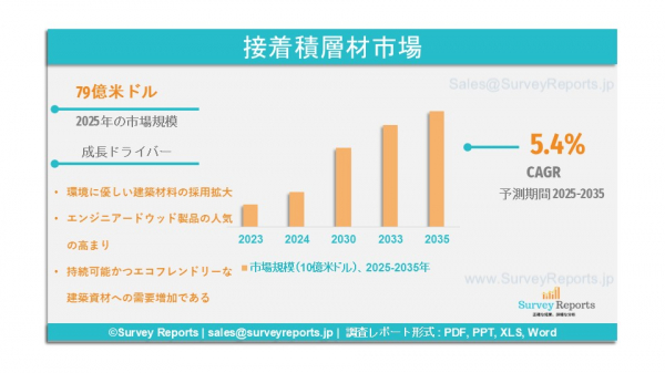 Survey Reports LLC は、2025 年 12 月に 「集成材市場:グレード別(プレミアムグレード、フレーミンググレード、インダストリアルグレード、アーキテクチュラルグレード)、梁形状別(ストレート、カーブ、カスタム)、接着剤タイプ別(フェノールホルムアルデヒド(PF)、メラミン尿素ホルムアルデヒド(MUF)、ポリウレタン(PUR)、エポキシ、その他)、用途別(住宅、商業、産業)―世界市場分析、動向、機会および予測 2025~2035」を公表したと発表した。