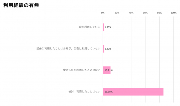 今回実施した調査によると、全体の約57%が「絵本サブスク」を認知しているが、具体的なサービス名については「知っているものはない」が7割以上を占め、「利用したことがある」割合はわずか約4%であった。