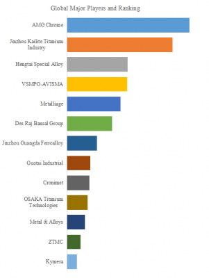 主要企業には、AMG Chrome、Jinzhou Kailite Titanium Industry、Hengtai Special Alloy、VSMPO-AVISMA、Metalliage、Des Raj Bansal Group、Guotai Industrial、Jinzhou Guangda Ferroalloy、Cronimet、OSAKA Titanium Technologiesなどが名を連ねており、それぞれが異なる地域戦略と技術強化によりシェアを獲得している。