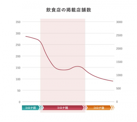 ※フリーペーパー『ちいき新聞』の有料広告枠に掲載された飲食店件数の推移