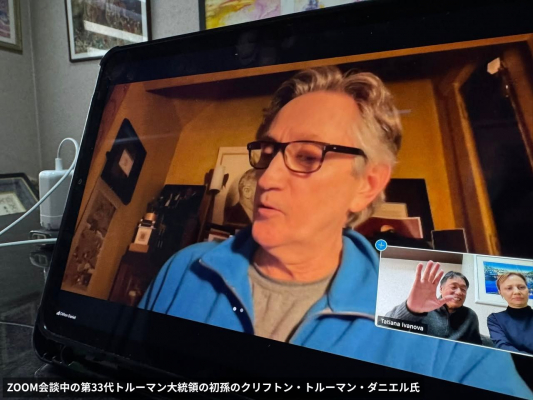 特定非営利活動法人 SADAKO LEGACY(代表:佐々木雅弘)は、広島の原爆で犠牲となった佐々木禎子の遺した「折り鶴」を通じた平和活動の一環として、第33代アメリカ合衆国大統領ハリー・S・トルーマン氏の初孫、クリフトン・トルーマン・ダニエル氏とのオンライン(Zoom)会談を行ったことをお知らせいたします。