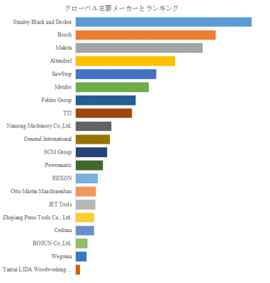テーブルソー市場は、Stanley Black and Decker、Bosch、Makita、Altendorf、SawStop、Metabo、Felder Group、TTI、Nanxing Machinery、General Internationalなどのグローバル工具メーカーによって構成されており、高い集中度を示す。LP Informationの分析によれば、2024年においてトップ5企業が売上ベースで約33.0%、トップ10企業では約45.0%の市場シェアを占めている。これら企業は、高精度の鋸刃、堅牢なフレーム、集塵機能、安全ガード、自動送り装置などを備えた製品を開発・供給しており、プロの木工・建築・家具製造市場での信頼性確保を重視している。さらに、製品ラインナップの幅広さとブランド力を活かし、業界の需要変動にも柔軟に対応する戦略を展開している。