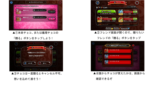 ◎『城ドラ』アプリ内に「バレンタインイベント」の画面が登場!フレンドにチョコを贈ろう