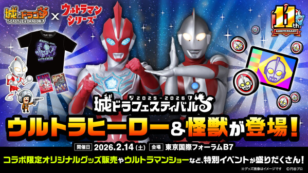 2026年2月14日(土)、東京国際フォーラムにて「城ドラフェスティバル2025-2026」が開催!当日はバレンタインデーということで、チョコにまつわるイベントも開催します。さらに今回は「ウルトラマンシリーズ」ともコラボし、さまざまなキャンペーンを会場やゲーム内にて開催!ご来場の方はもちろん、全国のプレイヤーが参加できるものもございますので、ぜひ会場で・お家でキャンペーンに参加しましょう!